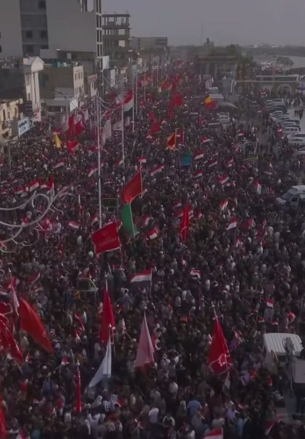 شهدت محافظة ميسان اليوم تظاهرة جماهيرية واسعة تلبيةً لدعوة السيد مقتدى الصدر، تنديدًا بالحرب الدائرة في المنطقه